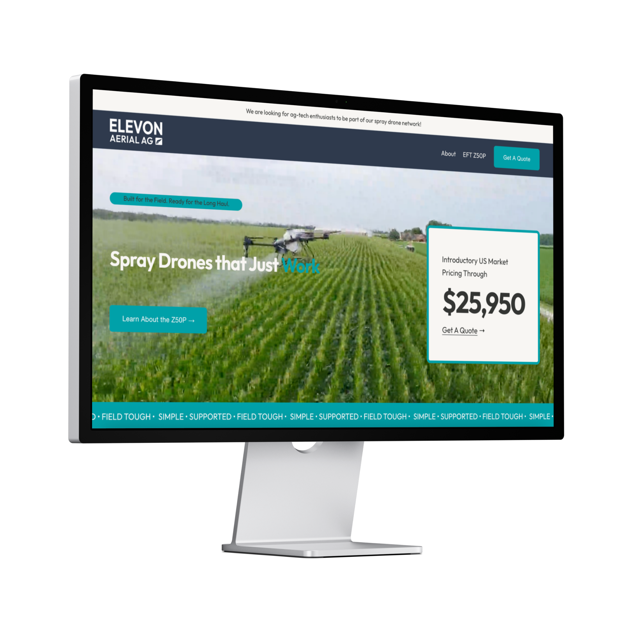Elevon launched with a complete brand foundation — from name to logo, website, and launch materials — and entered the competitive United States market as a service-first spray drone distributor.